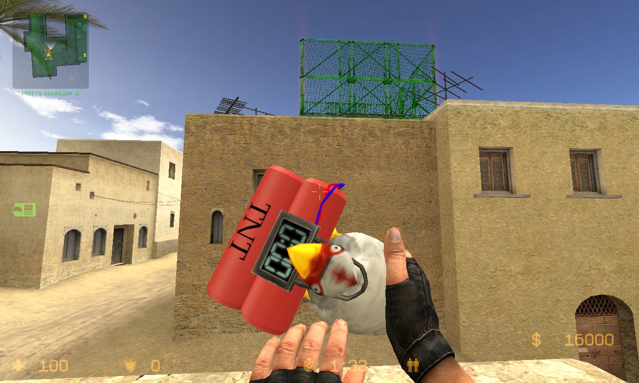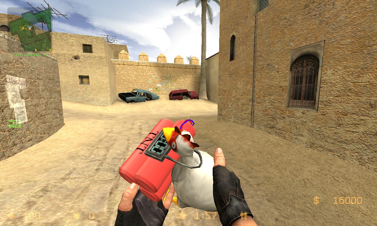 Серверная модель C4 «Chiken»_xxxx_15/01/2018Бесплатно Css OB/34, Бомбы/C4, Новости, Скины Оружия Прикольная модель бомбы в виде курицы)) Все версии CS. de_dust20054de_dust20056